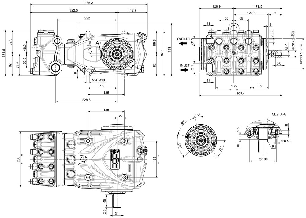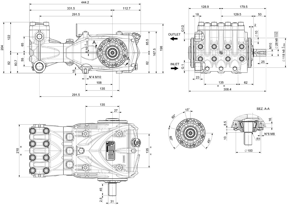 Edelstahl-Version mit Pumpenkopf aus AISI 420 / 1.4021 chem. vernickelt