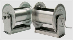 Model mit Handkurbel zum Aufrollen des Schlauches. Die Bremse ist mechanisch einstellbar.